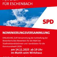 Wir laden herzlich zur Versammlung zur Aufstellung der Bewerberinnen und Bewerber für den Stadtrat der Stadt Eschenbach ein.